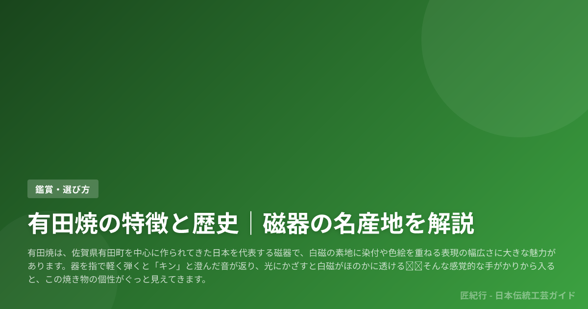 (注)本文には現時点で内部リンクがありません。将来、該当する記事が作成された際に「有田焼の定義」「産地紀行」などへの内部リンクを挿入してください。
