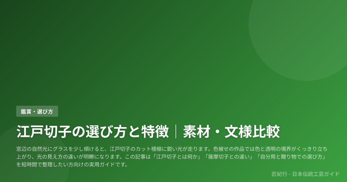 この記事は「江戸切子とは何か」「薩摩切子との違い」「自分用と贈り物での選び方」を短時間で整理したい方向けの実用ガイドです。