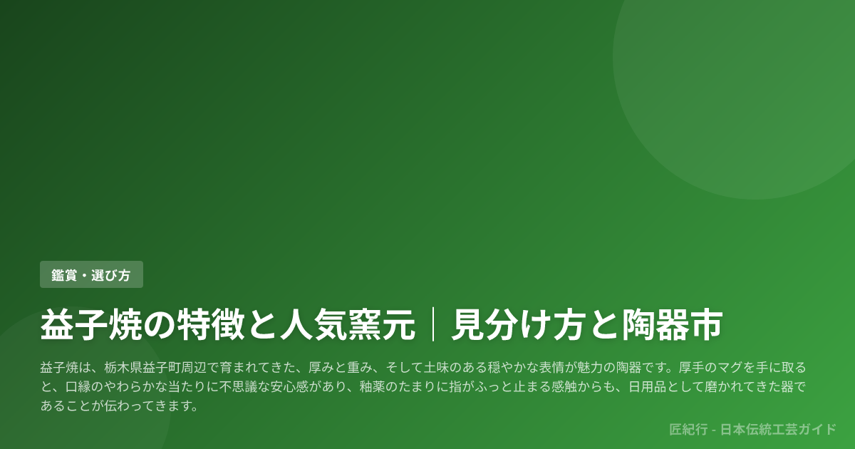 こうした仕組みは伝統工芸 青山スクエアやKOGEI JAPANでも整理されており、益子焼らしさを見分ける入口として押さえておきたいところです。