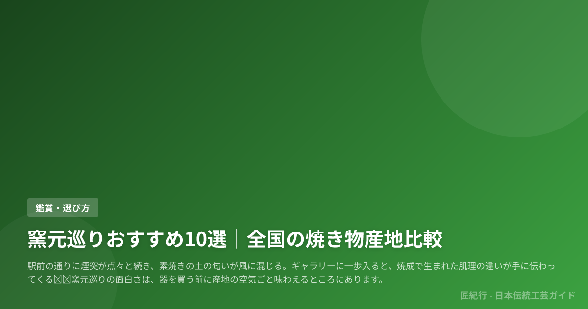登り窯の煉瓦に残るぬくもりや、棚に並ぶ器へ斜めから差し込む午後の光を思い浮かべると、次に選ぶべき産地もおのずと見えてきます。